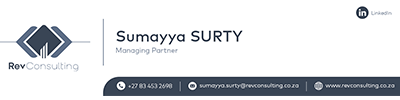 She has 20 years consulting experience, previously working at Accenture, Apperture Consulting, XybanetX and FeverTree Consulting. She has undertaken several projects where she has designed strategies and executed these for businesses across industries showing tangible results, example, all the telecommunication service providers, logistics and products, mining, several insurance companies and 4 of the big 5 banks. She has an Honours in Bachelor of Science in Information Systems (UNISA) and a Masters in Business Administration(GIBS).